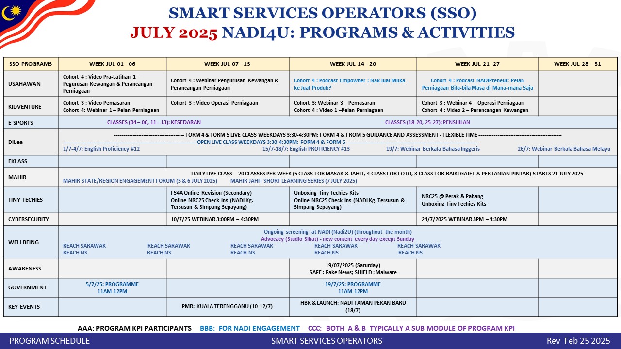 [WEBINAR NADI x CYBERSECURITY]🎮 MEMAHAMI RISIKO SIBER DALAM PERMAINAN ONLINE ANAK 📅 20 Jun 2025 (Jumaat)🕒 3:30 PM – 5:00 PM💻 Platform: Zoom (Live Streaming)🔗 Pautan Pendaftaran: cybersecurity.nadi.my 📌 Apa yang akan dibongkar?👻 “Charlie-Charlie” – Game seram jadi perangkap!🎯 Game […]